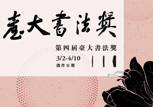 收件方式:每份稿件以原作品(毛筆組不需裱褙)摺疊,連同報名表、著作權讓與同意書裝入 A4 以上信封袋或自備海報筒,信封正面註明「第四屆臺大書法獎_組別_姓名」。親自送件或郵寄至臺大藝文中心,以寄(送)達時間為憑。