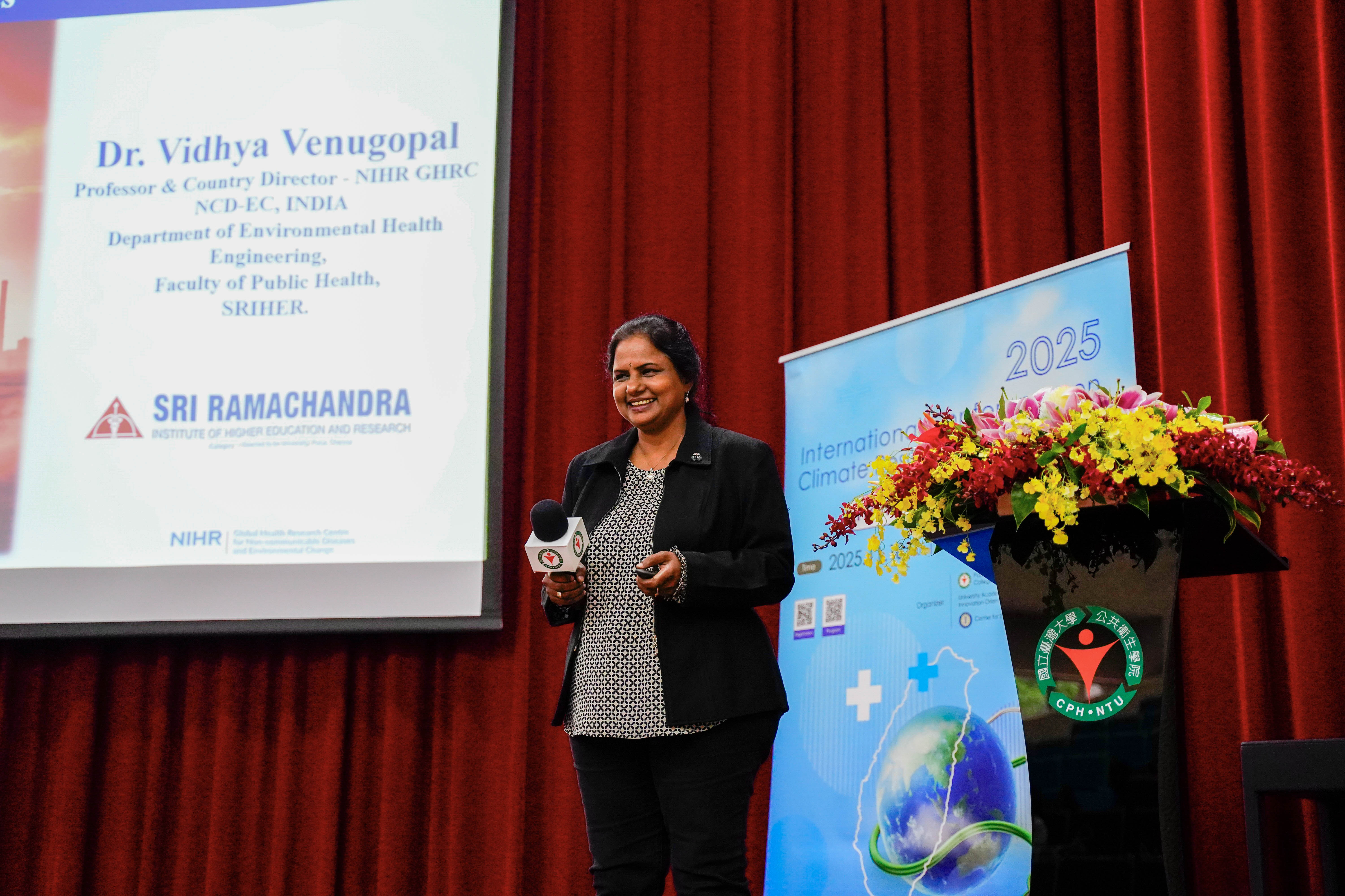 東京大學教授 Masahiro Hashizume則以日本民眾在極端高溫下的易感性與健康衝擊為例,提供亞洲國家寶貴的比較經驗與政策啟示。來自瑪希敦大學的副教授 Kraichat Tantrakarnapa進一步從衛生醫療體系切入,探討醫療部門在氣候調適中的關鍵角色,以及建構具韌性醫療服務的方向。印度 Sri Ramachandra Institute 的 Rekha Shanmugam 教授則以婦女與新生兒為焦點,分析暖化世界中脆弱族群所面臨的健康挑戰,並提出強化母嬰照護體系韌性的具體建議。