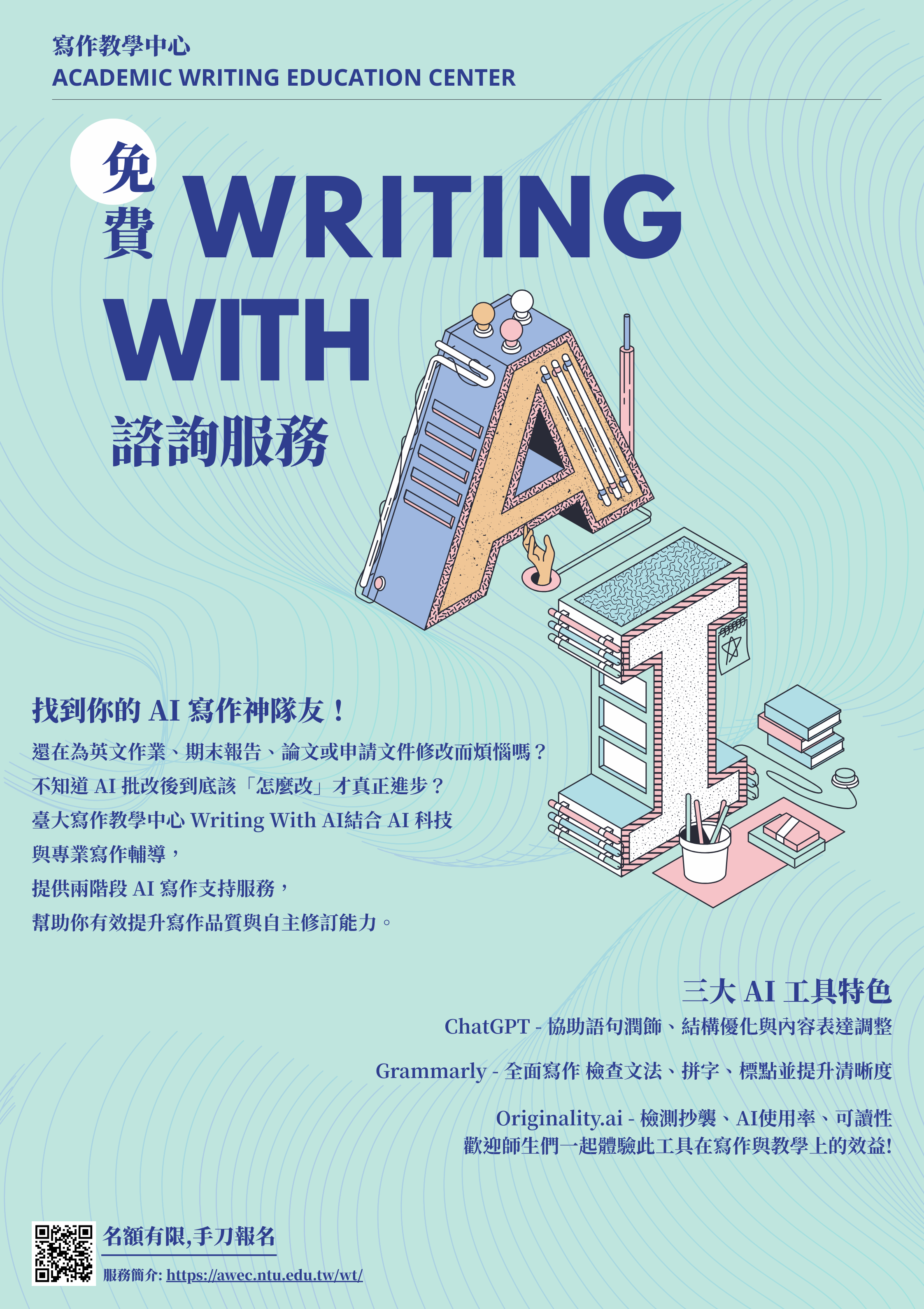 「Writing With AI」詳情及報名請看:https://awec.ntu.edu.tw/wt/