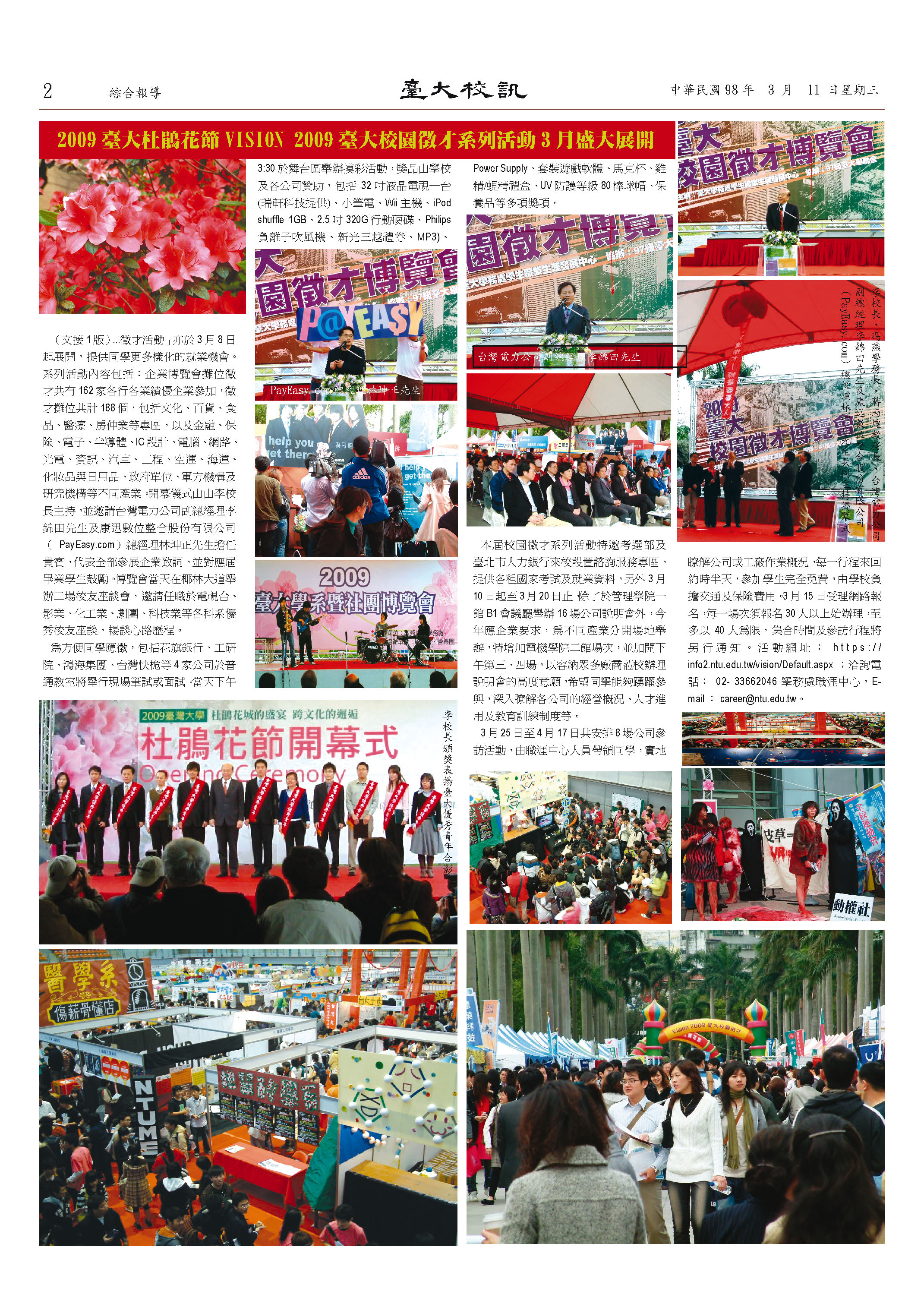 驚蟄雷動春雨滂陀校園杜鵑熱情綻放2009臺大杜鵑花節VISION2009臺大校園徵才系列活動3月盛大展開