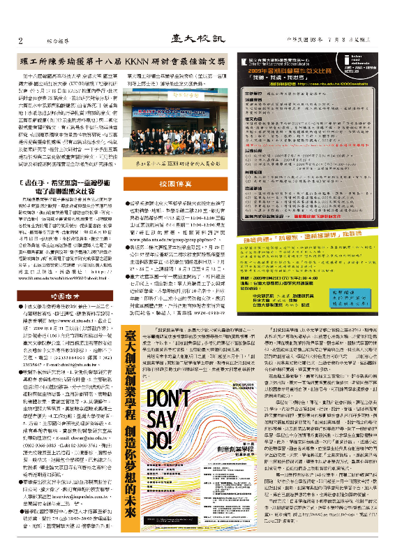 引發學生學習興趣讓同學自己挖掘知識寶藏椰林講堂提升教學品質計畫成果發表會結合傑出教學演講、教學改進研究、新生專題課程以及臺大研究成果發表
